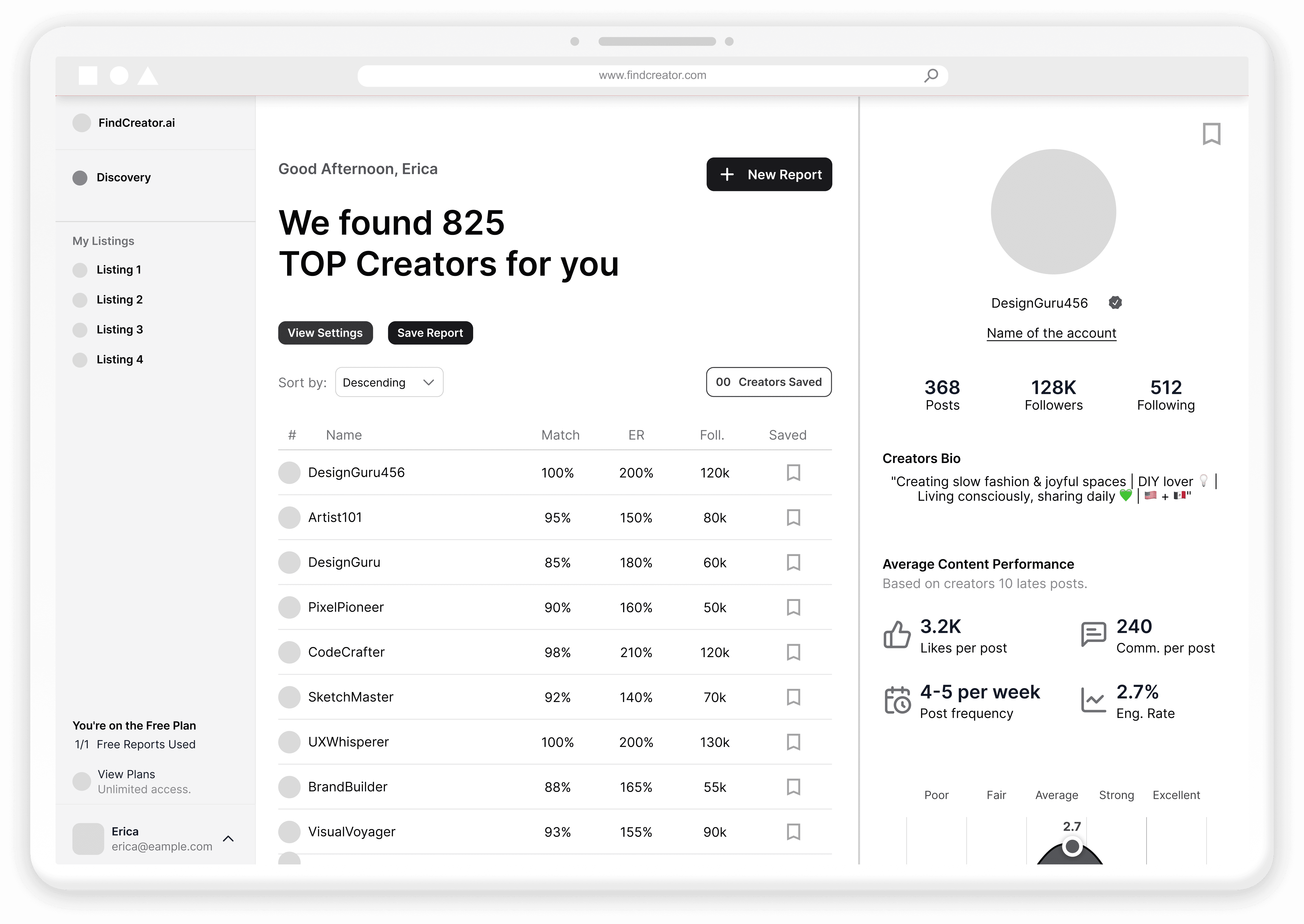A desktop platform designed to simplify influencer discovery through: