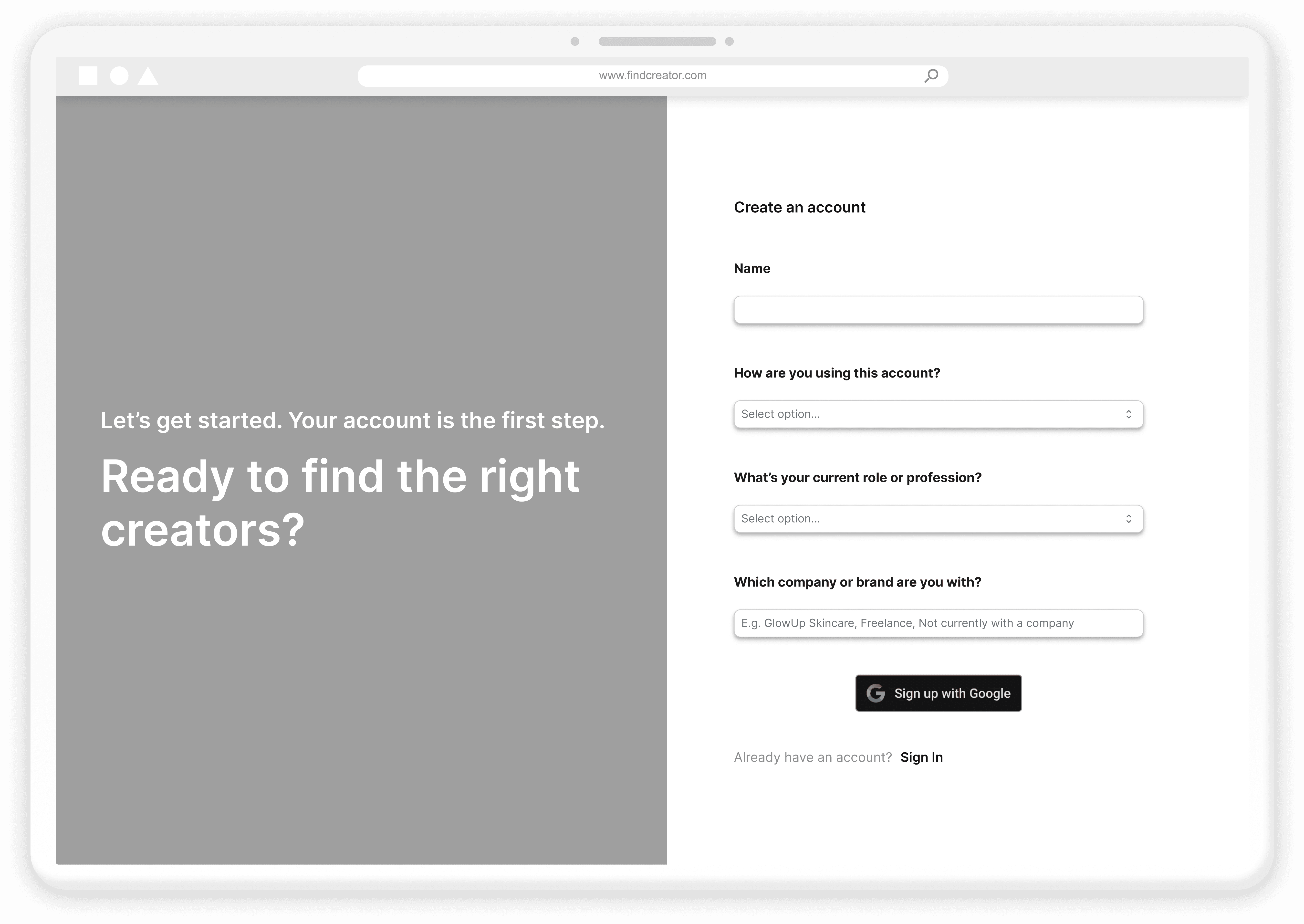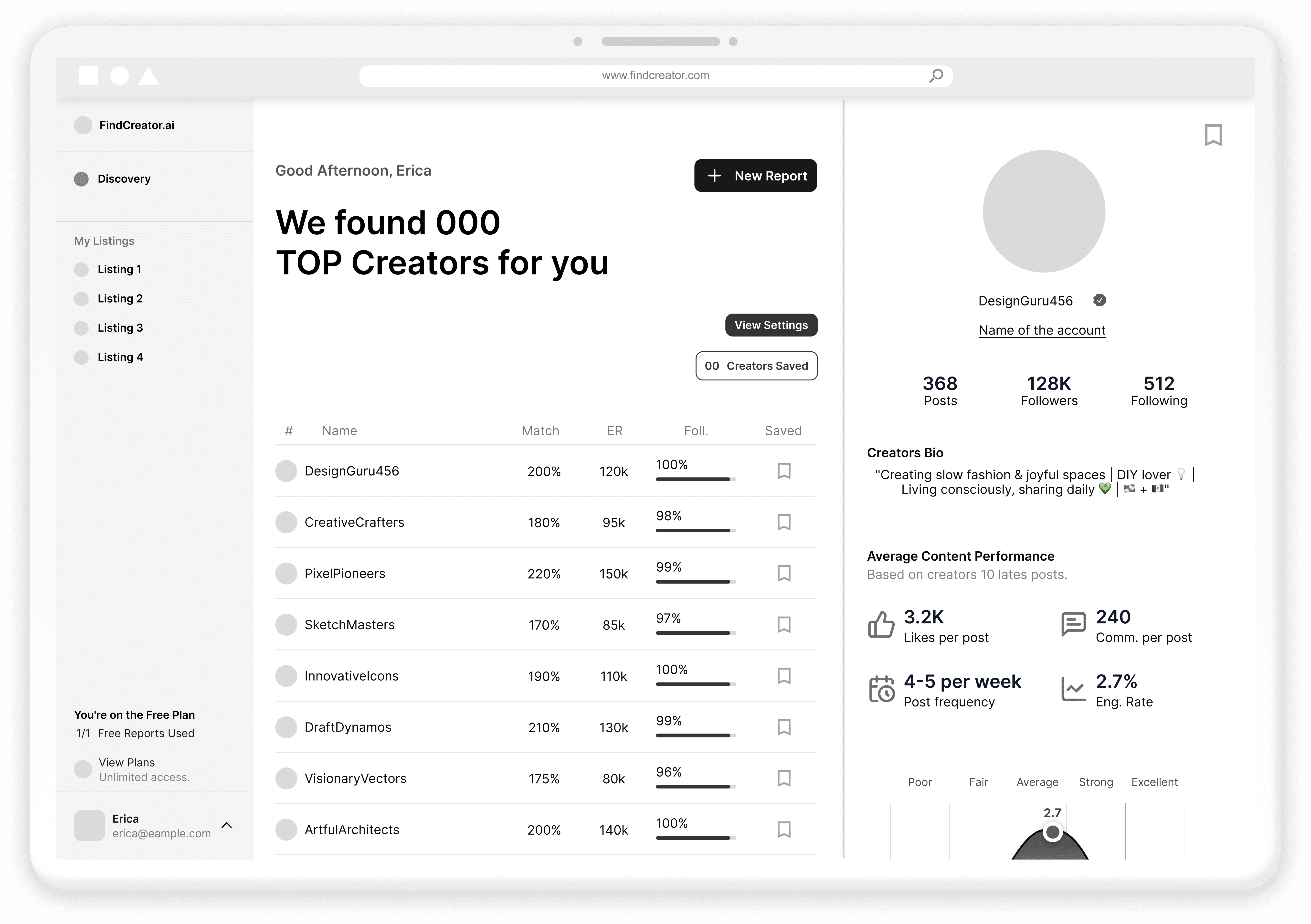 After rounds of research, feedback, and design updates, FindCreator finally came to life.